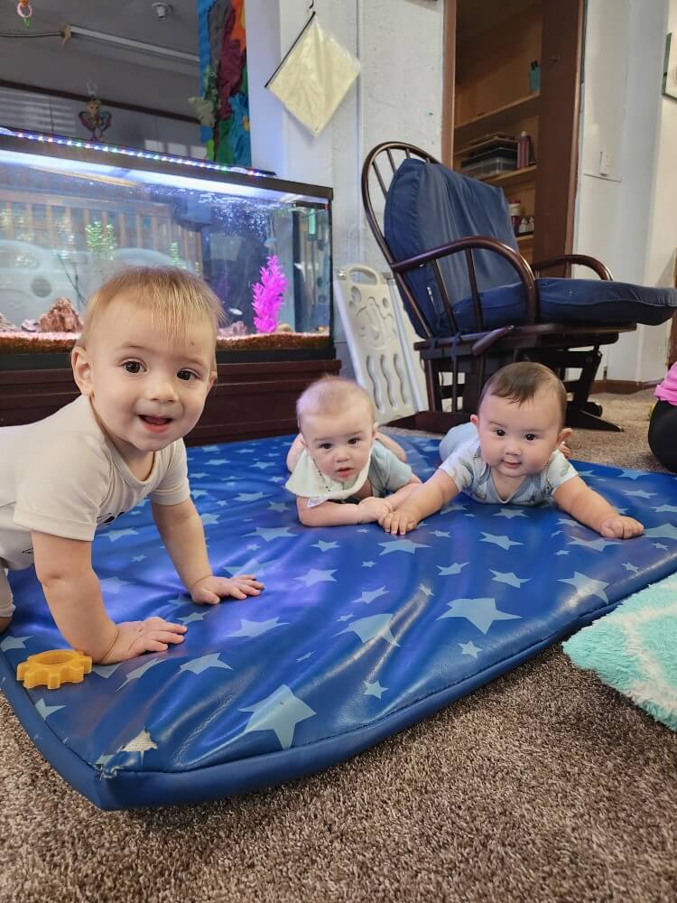 Welcome to our room of darling ducklings. Our child care educators provide a warm and caring environment. We have a large room with many areas for children to explore throughout their day. Daily your child will be showered with hugs and friendly smiles in between belly time, back time, sensory activities, and outdoor play. This will help ensure that children are reaching their very important developmental milestones. We have planned activities including puppet shows, musical instruments, songs, books, etc…to help the children stay stimulated during the day.